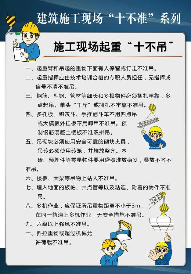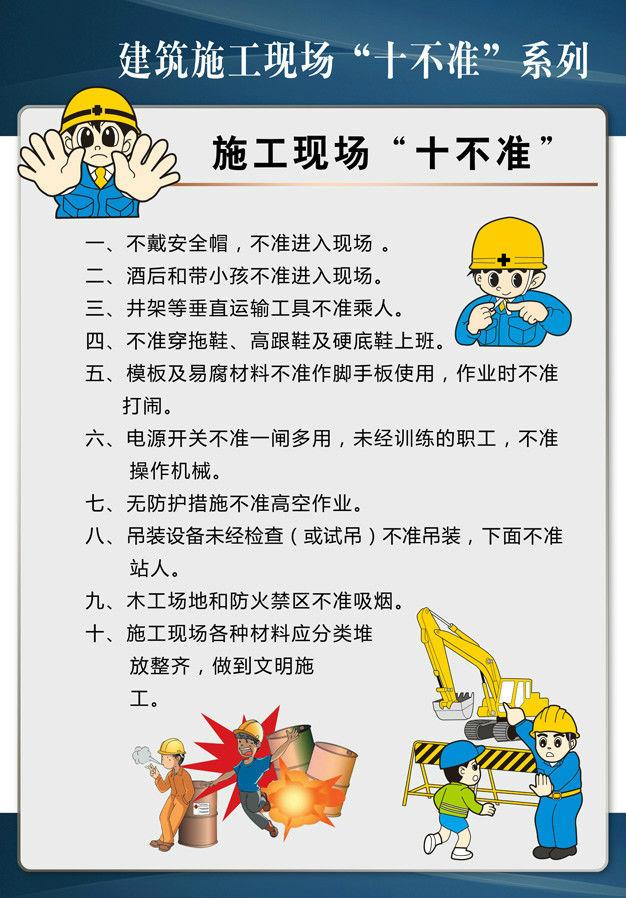 在此,為大家提供建筑工程施工現(xiàn)場常有“十不準”的掛圖,以防患于未然,為建筑工人的安全保駕護航。在此,為您分享九款掛圖,總有一款是您需要的!