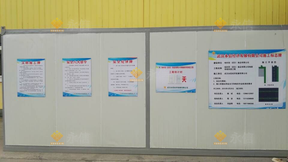 施工現(xiàn)場(chǎng)的入口處應(yīng)當(dāng)設(shè)置“一圖五牌”,即:工程總平面布 置圖和工程概況牌、管理人員及監(jiān)督電話牌、安全生產(chǎn)規(guī)定牌、消防保衛(wèi)牌、文明施工管理制度牌,以接受群眾監(jiān)督。在場(chǎng)區(qū)有高處墜落、觸電、物體打擊等危險(xiǎn)部分應(yīng)懸掛安全標(biāo)志牌。