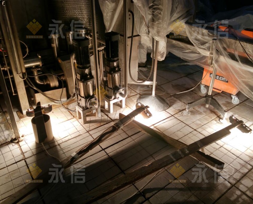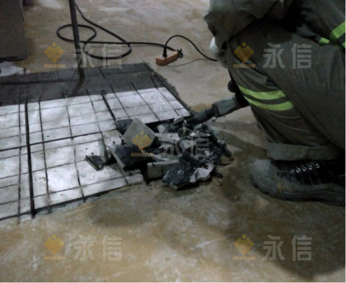 當(dāng)天,按照既定的施工計(jì)劃,現(xiàn)場的施工內(nèi)容是在人流通道區(qū)去除環(huán)氧以及基層處理、灌裝間破損、空鼓地磚破除聚合物修復(fù)及地磚錨固設(shè)置等。