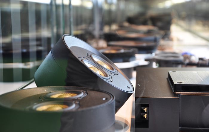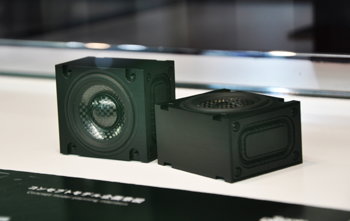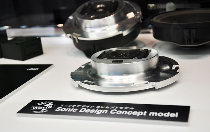 整個(gè)會(huì)場(chǎng)比預(yù)期的要大,今年聲麗創(chuàng)音發(fā)布了一個(gè)小型的未來(lái)型揚(yáng)聲器單元。并首次發(fā)布了將52mm口徑寬頻驅(qū)動(dòng)單元無(wú)框嵌入到在新設(shè)計(jì)的鋁制無(wú)縫外箱上構(gòu)成的全頻驅(qū)動(dòng)單元。這就是聲麗創(chuàng)音長(zhǎng)期以來(lái)追求的“在一個(gè)小口徑中融合壓倒一切的高性能理念”的新體現(xiàn)。這對(duì)相信以The Suite、Sound Suite為代表的52mm口徑可能性的人來(lái)說(shuō)是新的一步。將外箱和揚(yáng)聲器單元集成在一起,并在兩側(cè)將振膜鄰近配置等,該產(chǎn)品使用了多種新技術(shù)。這個(gè)小盒子凝聚了聲麗創(chuàng)音最新的聲音設(shè)計(jì)技術(shù)。在展臺(tái),可以看到該概念機(jī)型被安裝到梅賽德斯-奔馳A級(jí)(W177)上的參考展品。在新一代梅賽德斯中,原裝揚(yáng)聲器是從車門內(nèi)面板的背面通過(guò)鉚釘固定的,因此從更換技術(shù),安裝時(shí)間,安裝方法和工時(shí)的角度來(lái)看,更換揚(yáng)聲器特別困難。但如果使用這款概念機(jī)型,則無(wú)需拆下原裝揚(yáng)聲器,安裝門檻會(huì)大大降低。通過(guò)這種小型設(shè)計(jì),不僅僅是奔馳車,其他可安裝的車會(huì)增加很多。但目前只是參考出展,并不是說(shuō)就要做成A級(jí)車的專用產(chǎn)品。當(dāng)前,包括適合車種在內(nèi),聲麗創(chuàng)音正在努力進(jìn)行持續(xù)的開(kāi)發(fā)。