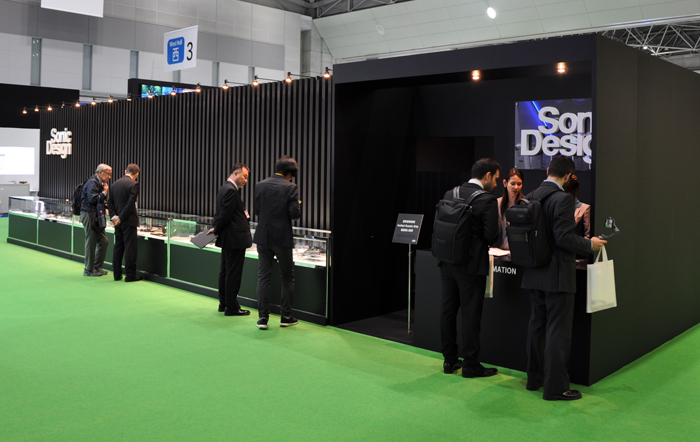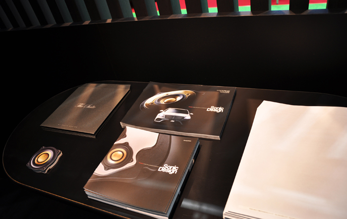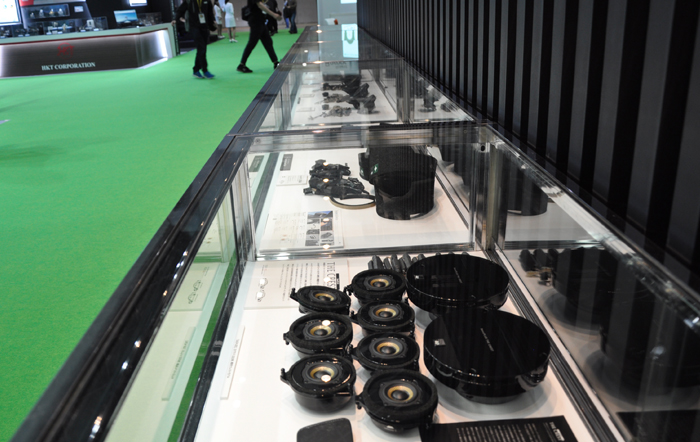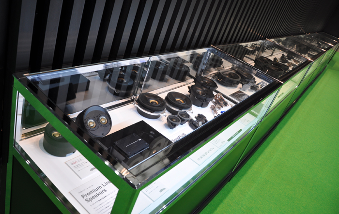 聲麗創(chuàng)音(Sonic Design)從2003年開(kāi)始連續(xù)9次參展。今年也在東京BigSite西展廳4樓「西3廳」布設(shè)了大家熟悉的黑晶格狀的展臺(tái)。命名為「The Suite Lounge」的展臺(tái)內(nèi),有和老客戶、商業(yè)伙伴交換信息、商談的封閉空間。展臺(tái)外圍的展柜中展示著聲麗創(chuàng)音的產(chǎn)品群。和以往一樣,與鮮度和時(shí)髦相比,展示內(nèi)容更重視品牌的普遍價(jià)值。不為瞬時(shí)的趨勢(shì)所動(dòng),始終如一的姿態(tài),在用安詳?shù)谋砬樽屇愀惺艿揭磉_(dá)的原則。聲麗創(chuàng)音的產(chǎn)品都是超越汽車生活,可以一生享用的東西。展臺(tái)就體現(xiàn)了這種氛圍。