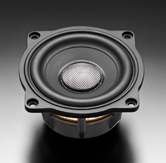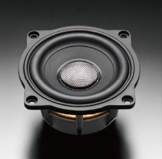 適配型的車(chē)門(mén)中低音單元,采用的是通過(guò)強(qiáng)度精細(xì)處理方式實(shí)施特殊表面處理的輕量超細(xì)纖維混紡聚丙烯振膜。通過(guò)DMF(Defined MicroFiber)音盆與添加了玻璃纖維中蓋的組合,實(shí)現(xiàn)了在成本范圍內(nèi)達(dá)標(biāo)聲麗創(chuàng)音規(guī)定的77mm中低音高精度揚(yáng)聲器的基準(zhǔn)。該單元繼承上級(jí)單元的鋁壓鑄框架,尼龍中蓋,驅(qū)動(dòng)系統(tǒng)等基本式樣,使小口徑特有的干凈清晰音質(zhì)和超出口徑級(jí)別的寬頻播放成為可能。