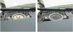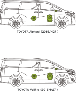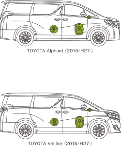 安裝在前門(mén)的原裝喇叭(左圖)和埃爾法/威爾法(30系)專(zhuān)用中低音揚(yáng)聲器(右圖)的安裝例
