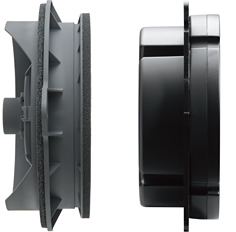 前聲場(chǎng)專(zhuān)用中低音揚(yáng)聲器,采用最大限度利用原裝車(chē)門(mén)喇叭安裝空間的橢圓形高深度大容量鋁壓鑄+樹(shù)脂結(jié)構(gòu)密閉一體型音箱。在實(shí)現(xiàn)SonicPLUS最大級(jí)別內(nèi)容積密閉一體型的同時(shí),通過(guò)抑制引起音質(zhì)劣化的內(nèi)部定在波,獲得豐富自然的中低音。后門(mén)中低音單元的密閉一體型音箱,采用薄型緊湊型箱體。所有的密閉一體型音箱都實(shí)施了與其喇叭單元特性相符的調(diào)音,使之與前聲場(chǎng)喇叭的綜合平衡達(dá)到最佳。